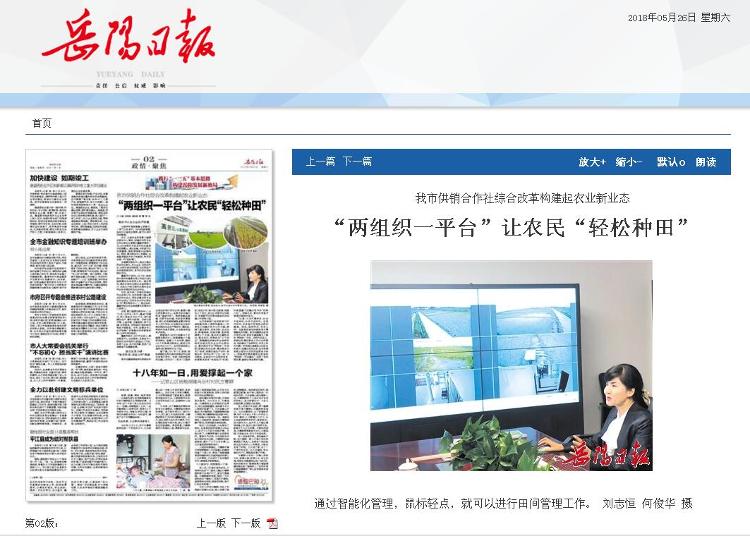 近日,记者在岳阳县筻口镇惠农服务中心看到,该镇的农民专业合作社联合社理事长董敏芳鼠标一点,200亩稻田中的实时状态就显示在屏幕上,通过电脑、手机就可以实现灌溉、施肥等智能化远程作业。她说,惠农服务中心的建设,当地越来越多的农户体验到,种田其实是一件“轻松事”。