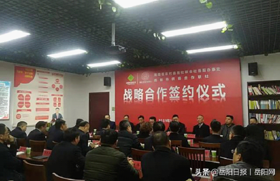 岳阳日报全媒体讯(记者 漆杰)11月27日上午,湖南省农村信用社联合社岳阳办事处与岳阳市供销合作联社战略合作签约仪式在市供销合作联社隆重举行,岳阳市供销合作联社党委书记、理事会主任彭岳武出席并致辞,省农村信用社联合社岳阳办事处主任刘汉军、市供销合作联社党委班子成员、各农商行董事长,省农村信用社联合社岳阳办事处相关科室负责人,及各县市区供销社理事会主任,市供销合作联社各科室负责人齐聚一堂共同参加了战略合作签约仪式。