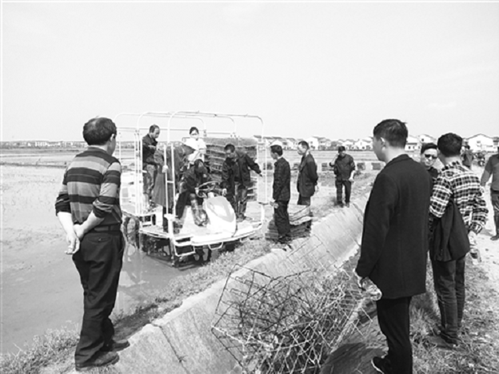 湖南省汨罗市罗江镇黄市村现有基本农田4500亩。自2019年成立村级供销合作社号召村民开展土地托管(流转)以来,共托管(流转)土地2100亩。所有托管(流转)的土地均交由罗江镇惠农服务中心进行育秧、翻耕、机插、统防统治等全过程农业社会化服务,农业生产成本下降10%。同时,在村级供销合作社的带领下,全村早稻种植面积3600多亩,占全村总面积的80%以上,积极落实了国家保障粮食安全的决策部署。图为罗江镇惠农服务中心在田间进行插秧机作业培训。