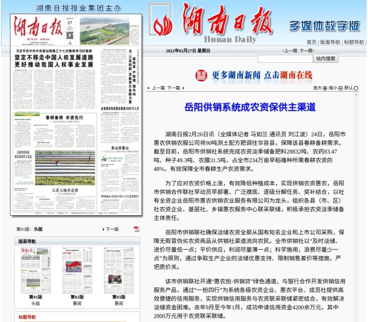 为了应对农资价格上涨,有效降低种植成本,实现供销农资惠农,岳阳市供销合作联社早动员早部署、广泛摸底、逐级分解任务、奖补结合,以社有全资企业岳阳市惠农供销农业服务有限公司为龙头,组织各县(市、区)社农资企业、基层社、乡镇惠农服务中心联采联储,积极承担农资淡季储备主体责任。