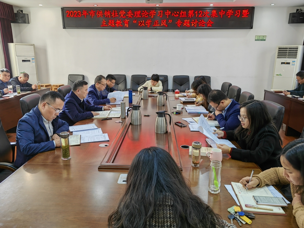 11月27日下午,市供销合作联社党委书记、理事会主任向风行主持召开2023年党委理论学习中心组第12次集体学习暨“以学正风”专题研讨会。市社党委班子成员参加学习研讨。各科室负责人、青年理论学习小组成员参加学习。
