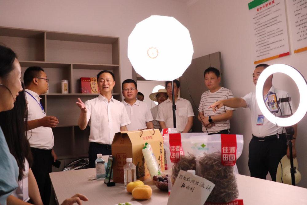 7月13日,作为岳阳市“党建引领乡村振兴示范基地”创建工作现场会示范点之一的临湘市坦渡镇韩桥村,由村供销合作社同步承办了“临湘市抓党建促乡村振兴电商直播节”,近二十家农业生产龙头企业同时在现场开展电商直播,集中线上推介临湘市百余款农特产品。