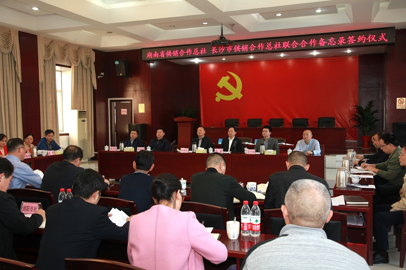 10月31日下午,湖南省供销合作总社与长沙市供销合作总社率先联合合作带动全省系统联合合作备忘录签字仪式在长沙市社机关举行。省社党组书记、理事会主任曾震亚,长沙市人民政府副市长李蔚出席并讲话。省社办公室主任徐卫和长沙市社党委委员、理事会副主任文朝阳共同签署联合合作备忘录。