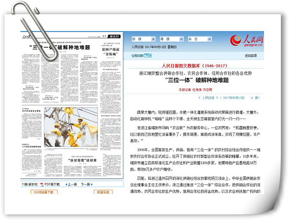 浙江瑞安整合供销合作社、农民合作体、信用合作社的各自优势
