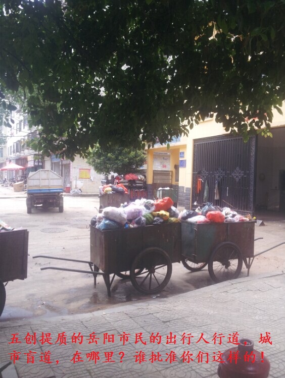 该中转站位于东西主干道边,每逢垃圾中转时段,自卸式机动垃圾车来此进行垃圾清运,小的人力垃圾车从四面八方汇聚于此倾泻转运垃圾,每到此时对于非机动车道上的自行车及路上的行人都造成的了出行的影响,由于人行道被机动垃圾车完全截断,所以行人只能走机动车道,因此而埋下了交通安全隐患,此处多年来多次发生行人摔倒、被自行车、电动车撞倒而受伤的交通安全事故。特别是该垃圾站门口的一个便于自卸垃圾车清运的斜坡路完全阻断了该人行道上的一条盲道《残疾人保障法》第四十六条规定:国家和社会逐步实行方便残疾人的城市道路和建筑物设计规范,采取无障碍措施。《道路交通安全法》第三十四条第二款也规定:城市主要道路的人行道,应当按照规划设置盲道。盲道的设置应当符合国家标准。此处完全阻断盲道的行为与《残疾人保障法》等相关政策法规背道而驰,极大的损害了残疾人的合法权益。